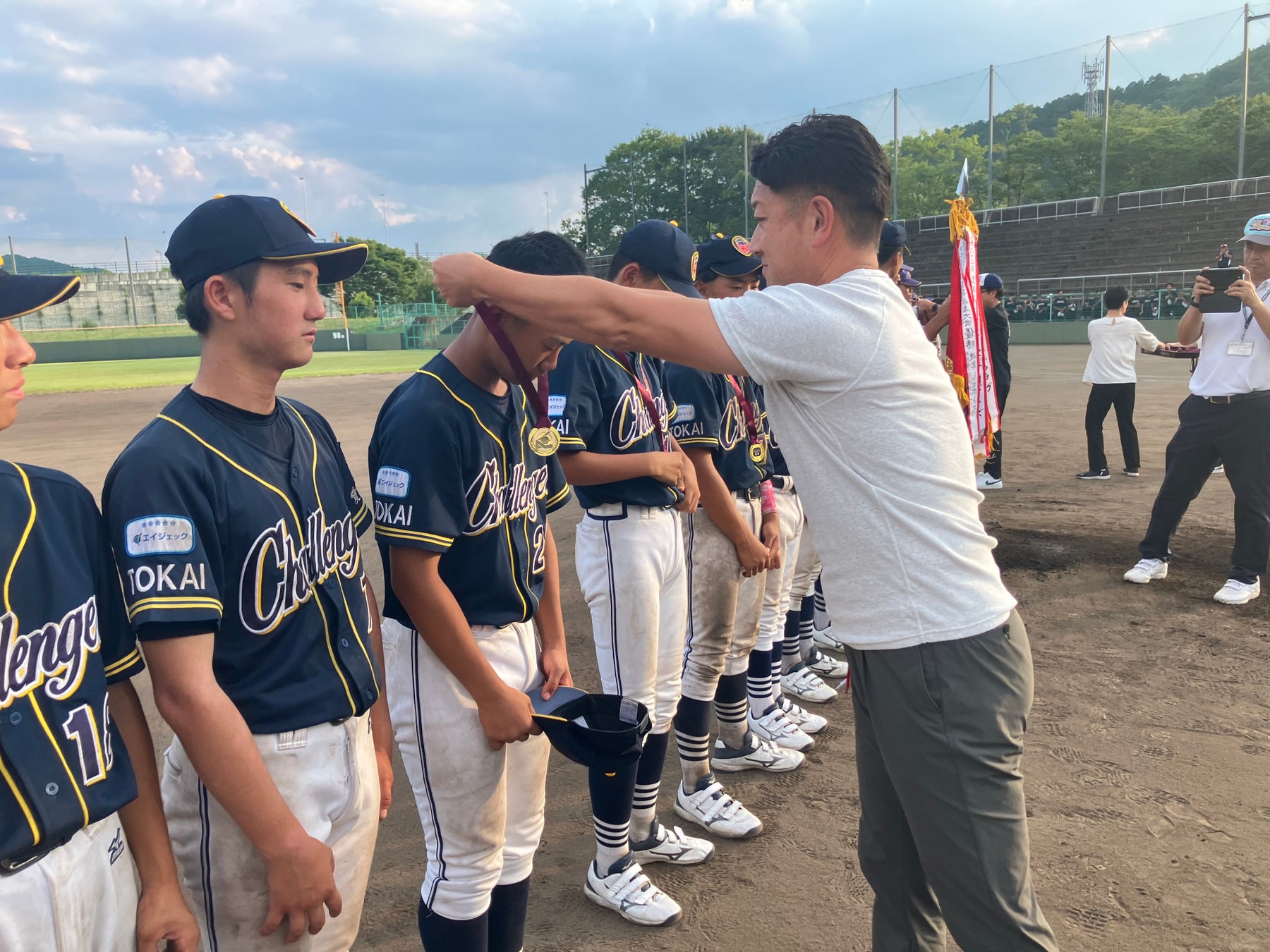 また表彰式では取締役副社長の中森より「この酷暑の中で3日間戦ってきた選手の姿を間近で見ることができ、胸を打たれました。この大会やこれまでにも、嬉しいことや悔しいことがたくさんあったと思います。どれも財産だと思いますので、ここで学んだことを皆さんのこれからの野球人生、自分自身の人生に活かしてほしいと思います」と選手に言葉を贈りました。