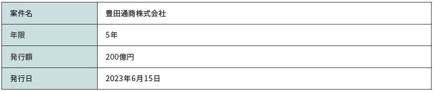 ソニー銀行株式会社(代表取締役社長:南 啓二/本社:東京都千代田区/以下 ソニー銀行)は、豊田通商株式会社(以下 豊田通商)が発行するグリーンボンド(以下 本債券)への投資を実施しましたのでお知らせいたします。