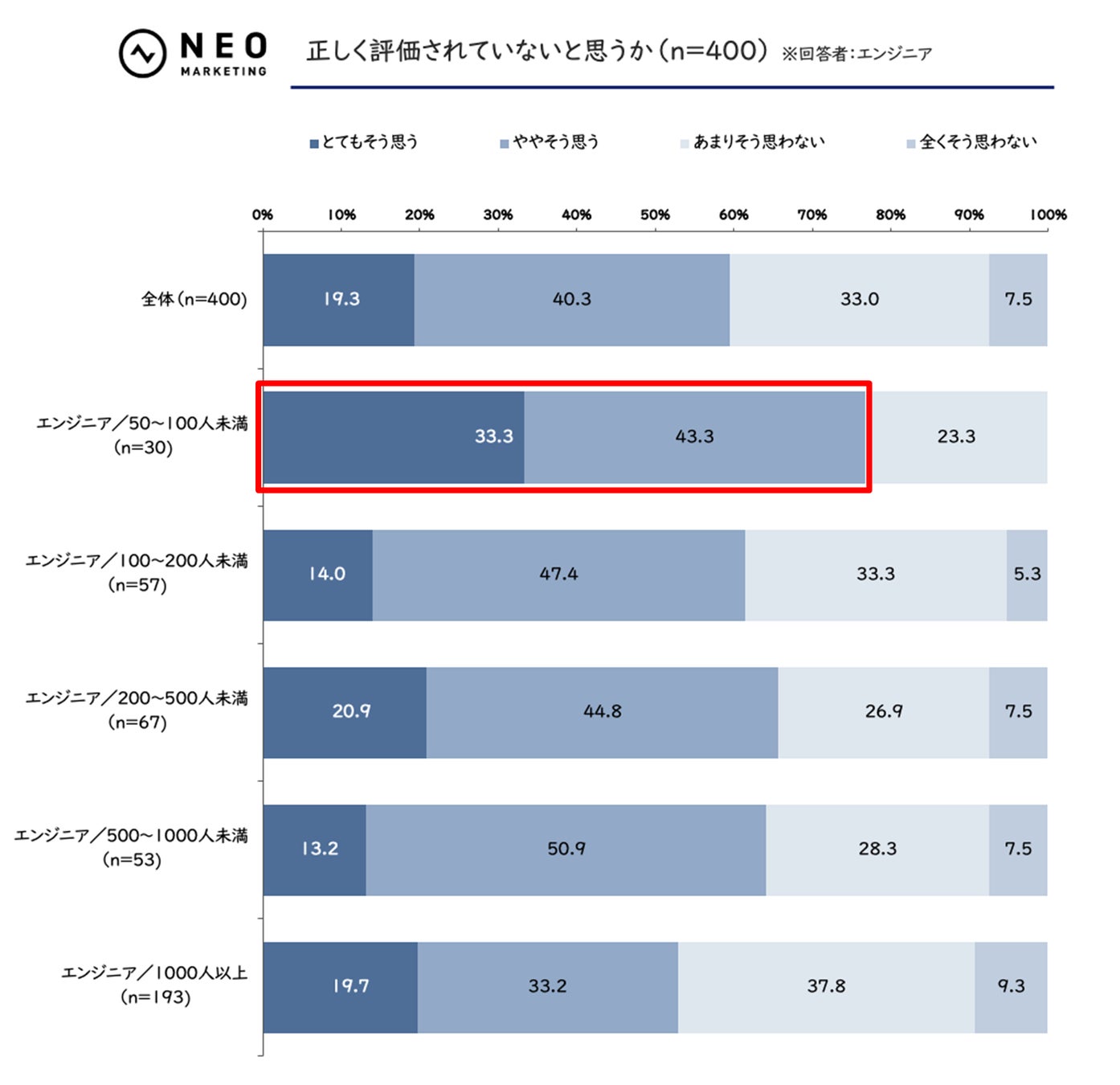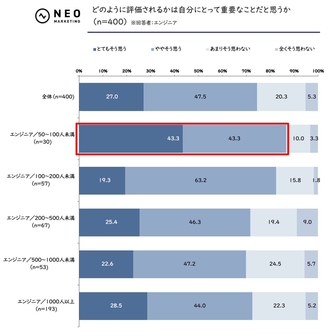 さらに注目すべきは、同じく従業員数50〜100人未満のエンジニアの86.6%(※)が「どのように評価されるかは自分にとって重要なことだと思うか」の設問に「そう思う」と回答していることです。