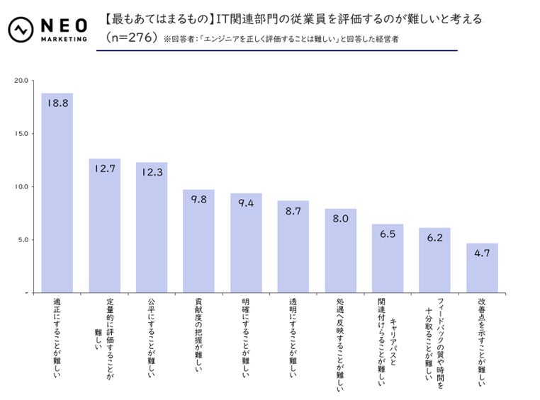 評価の難しさとして「適正にすることが難しい」が18.8%でトップに。
