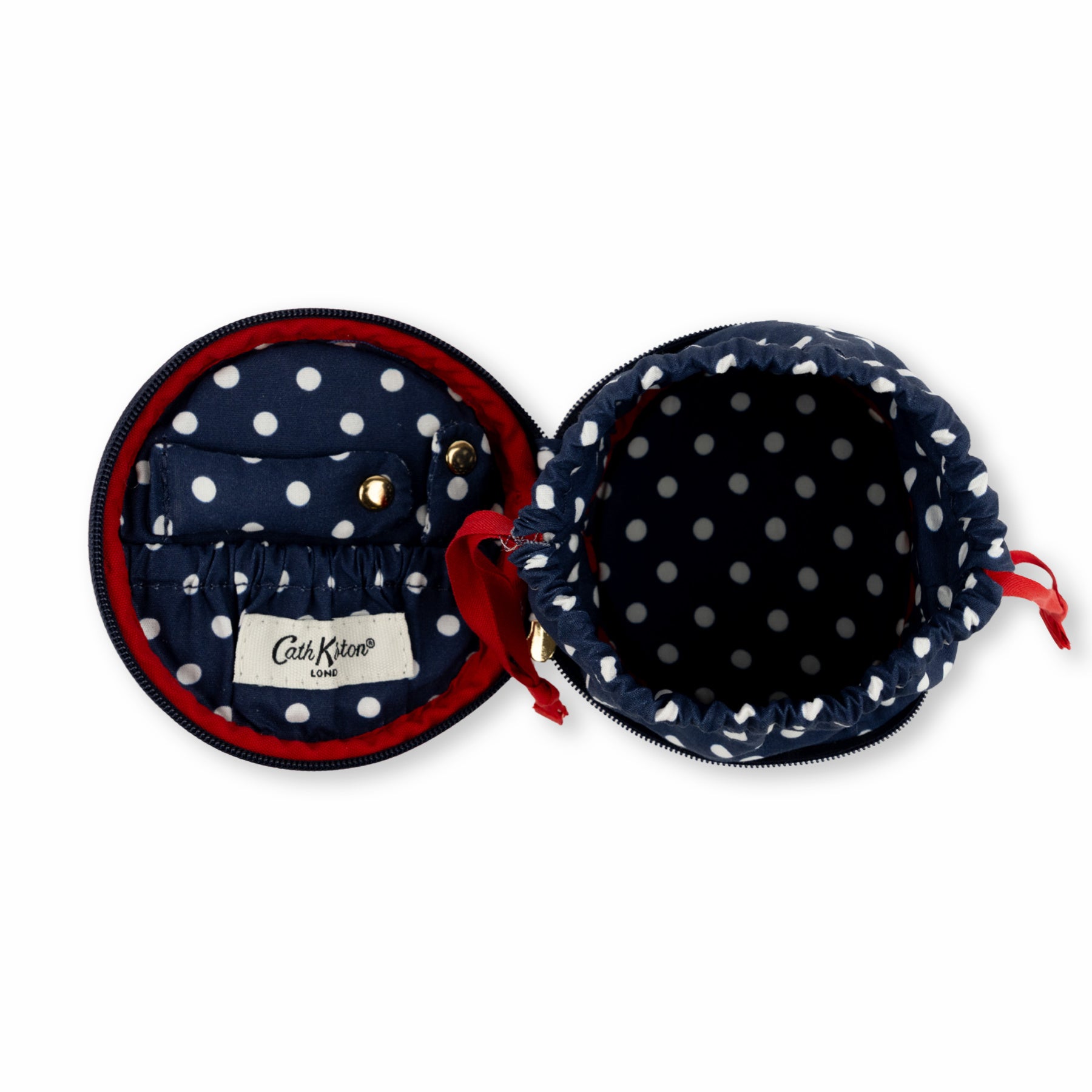 アクセサリーポーチは、フタの裏面にネックレスやリングを収納できるタブとポケット付きで、メインの収納も巾着付き。アクセサリーや時計など細かいアイテムの持ち運びにも最適です。
