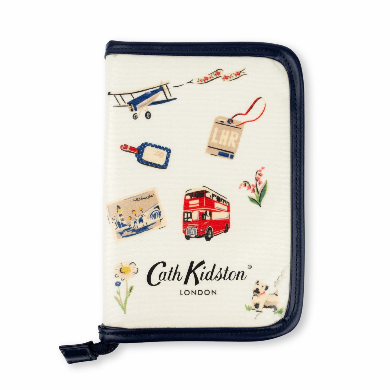 「 Billie Goes On Holiday 」は、犬のビリーが休日にロンドンを旅しているシーンからモチーフを抜き出してワッペン風に仕上げています。ロンドンバスやヒースロー空港のタグ、イギリスの地下鉄ピカデリーラインの看板など、ロンドンならではのモチーフがたまらないデザイン。各アイテムの裏面はネイビーのドット柄。昔懐かしいCath Kidstonを思い出させてくれるデザインです。