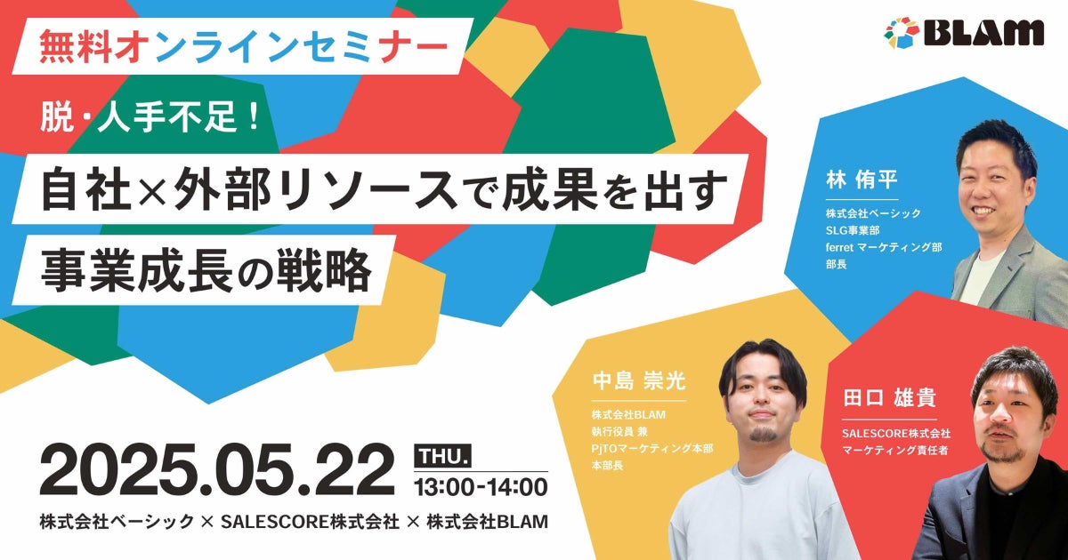 ベーシック、5/22(木)13時よりBLAM主催のセミナー「脱・人手不足!自社×外部リソースで成果を出す事業成長の戦略」に登壇