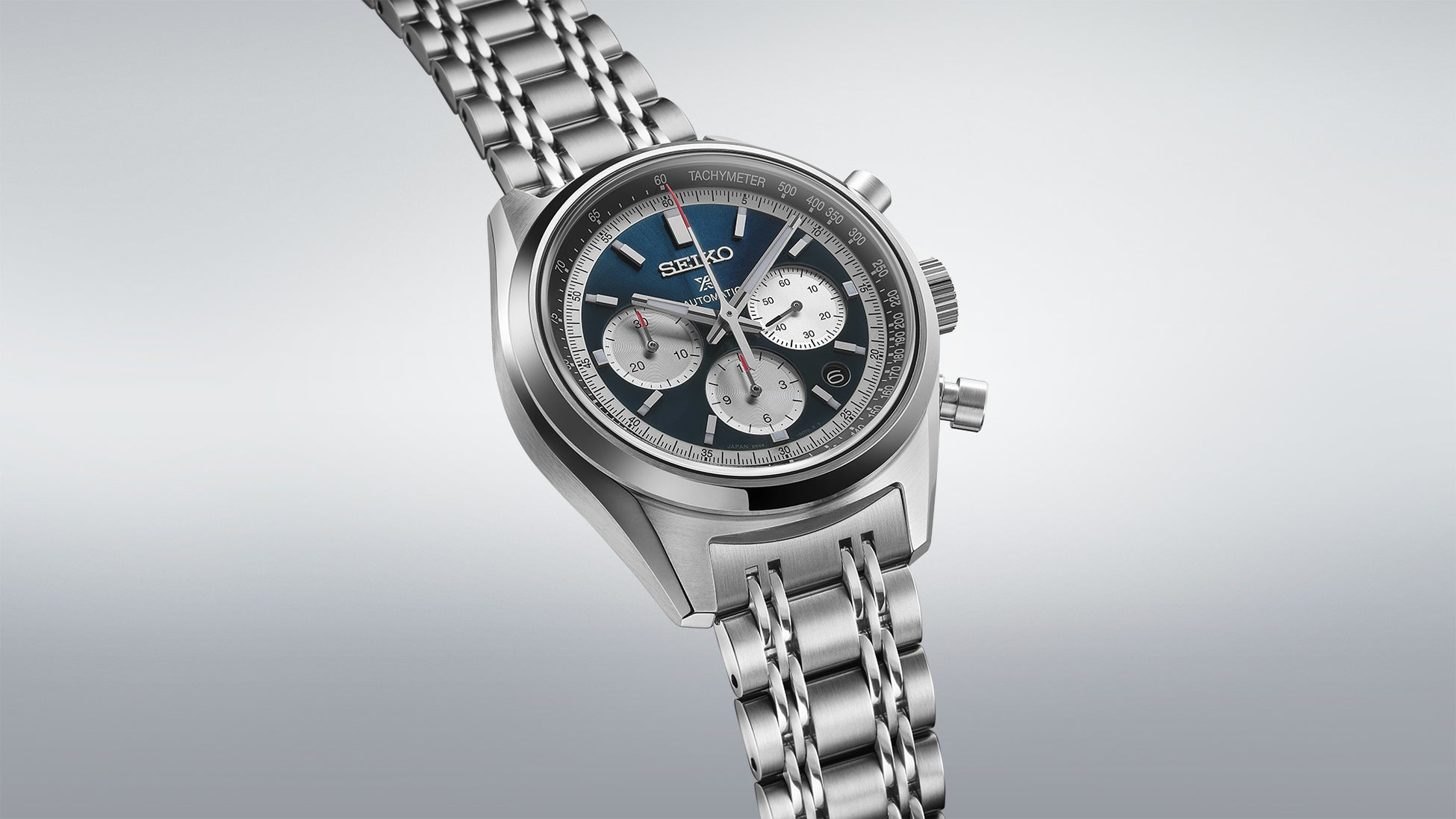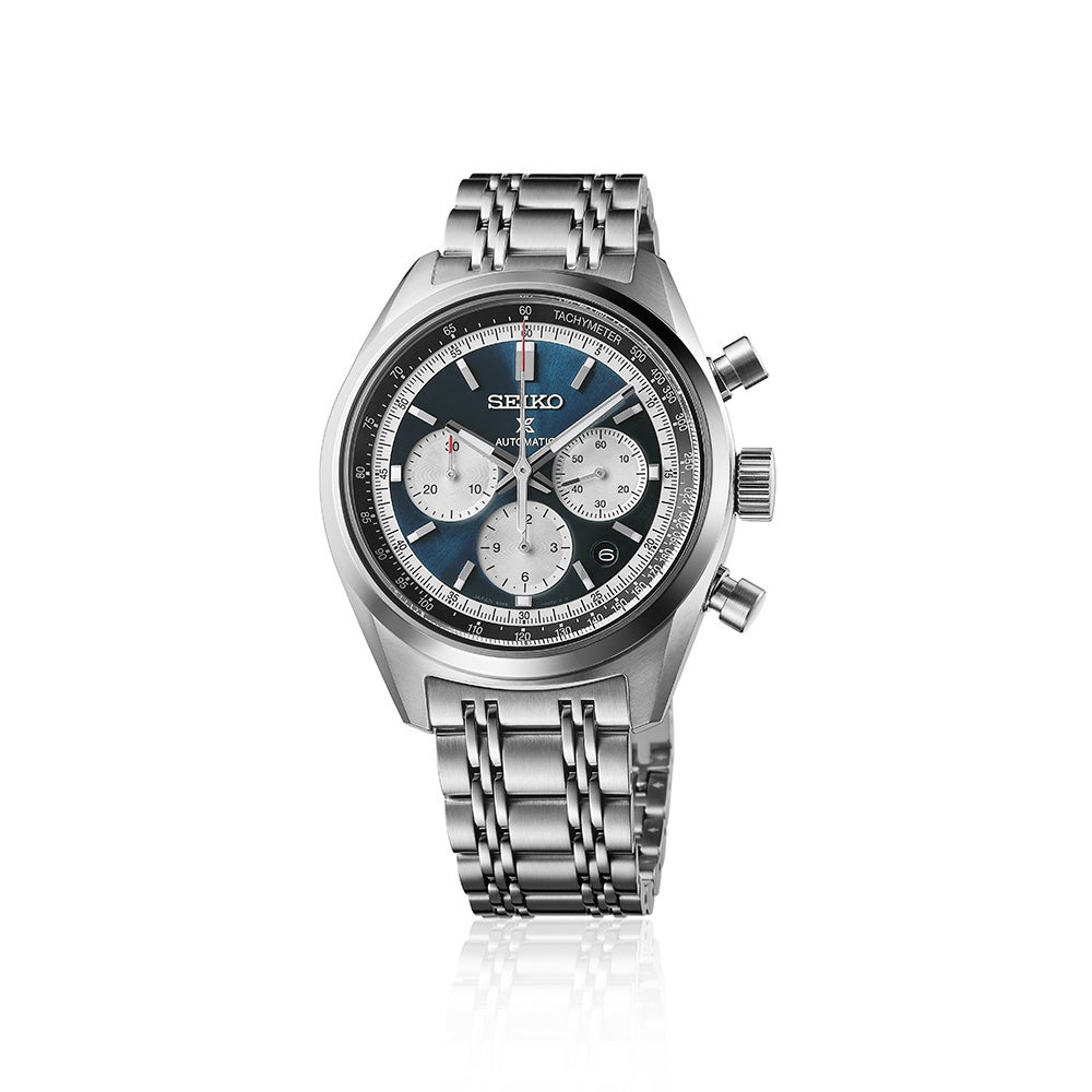 本作は、1972年に発売され、今なお高い評価を得ているセイコーの自動巻クロノグラフをデザインソースとし、流線形のフロー型ケースを採用したスポーティーなデザインに、先端のムーブメントを組み合わせた、セイコーのクロノグラフの歴史につらなる次世代型モデルです。