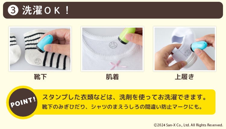 ポン!と押すたびにかわいいリラックマと仲間たちが子どものもちものの目じるしになる「リラックマ もちものスタンプ」。