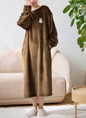 ■特長:ふわふわもこもこの素材に、ミッフィーの刺繡が特徴のルームウエア。胸元に付いたミッフィーの顔がポイント。かわいらしいゆるっとしたシルエットのワンピースデザインだから、おうちでおしゃれをお楽しみいただけます。便利なポケット付き商品です。