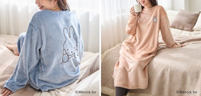 「ミッフィーぬくぬくルームウエア(セットアップ対応)」は、トップスとボトムスにお揃いのミッフィーの刺繡が入った、かわいらしいルームウエア。肌ざわりの良いふんわりとした素材のため、これからのシーズンにぴったりの、心も体も癒されるアイテムです。「ミッフィーぬくぬくワンピース」は、ふわふわもこもこの素材を使った、長め丈ワンピースのルームウエア。胸元に付いたミッフィーとゆるっとしたシルエットがポイントです。