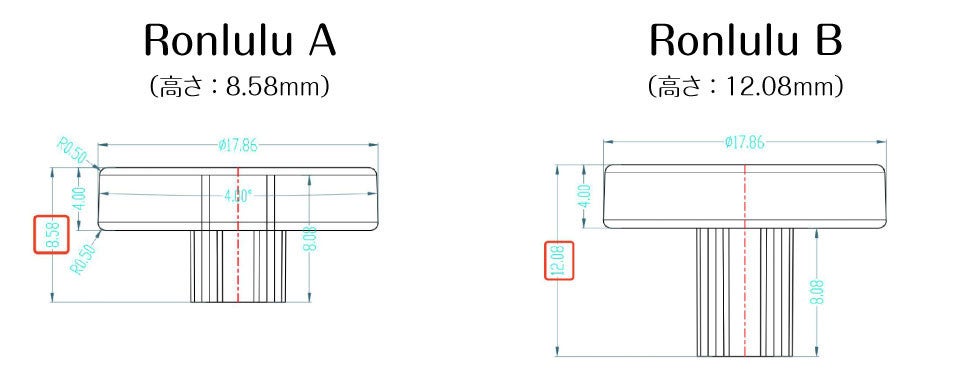Ronlulu-BはRonlulu-Aより脚の長さが長く、Rymekに特化したキーキャップです。