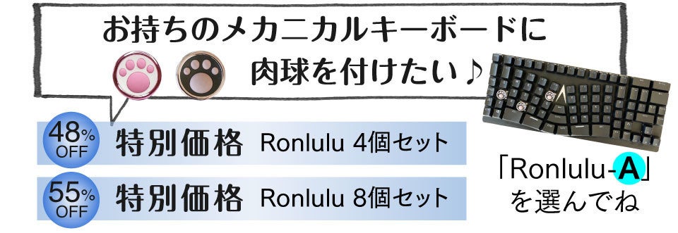 【Rymek&Ronlulu】の両方の購入はもちろん、「Ronlulu」は標準的なメカニカルキーボードとも互換性があるので、お手持ちのキーボードに一部分だけ肉球キーキャップをカスタマイズすることも可能です。