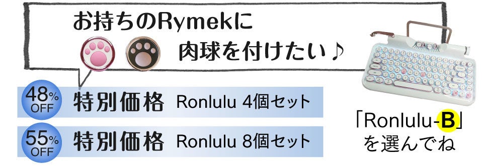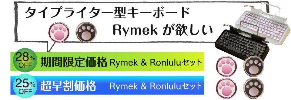 【Rymek&Ronlulu】(ライメク&ロンルル)はレトロなメカニカルキーボードの「Rymek」 と、肉球キーの「Ronlulu」で構成した特別モデルのメカニカルキーボードです。遊び心と機能性を併せ持ち、新感覚な使い心地で愛猫家必見のキーボードとなっています。