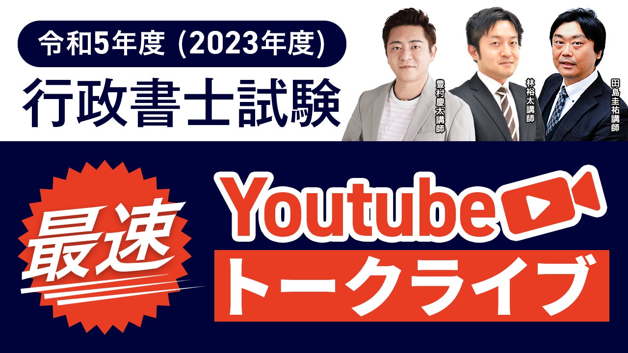 アガルートアカデミーは2023年行政書士試験の試験当日に「解答速報」、講師3名による 「総評」「トークライブ」YouTubeLIVE配信を会員登録不要で無料公開いたします。