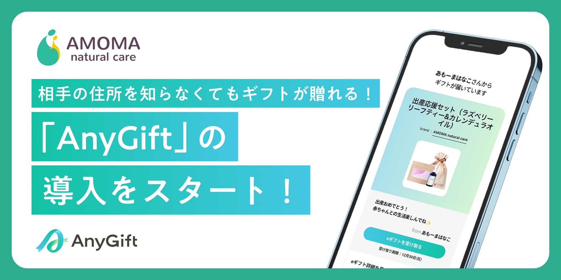 そこで、お客様にもっと気軽にAMOMA narural careの商品をギフトとしてご利用いただきたいという思いから、この度AnyGiftの導入を決定いたしました。