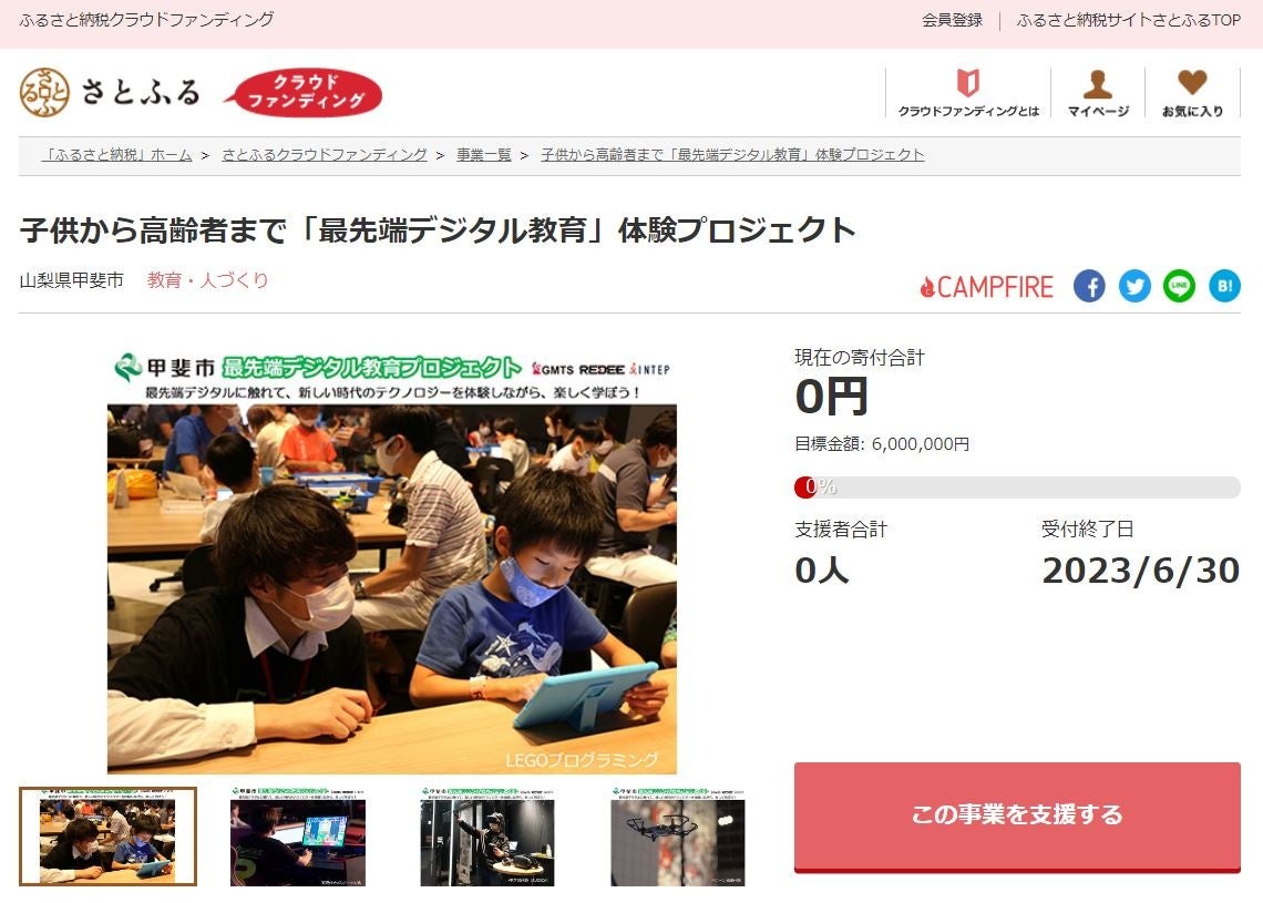 山梨県甲斐市とさとふる、デジタル教育体験イベントを開催するため、寄付受け付けを開始