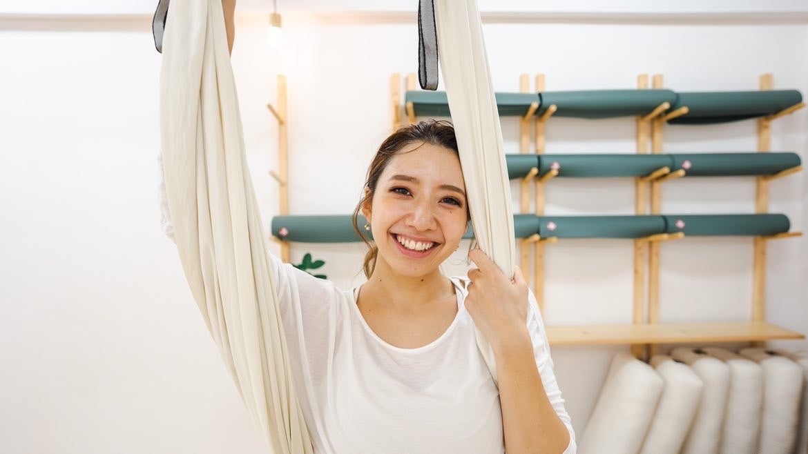 2022年神戸からから沖縄へ移住、2022年エアリアルヨガができるヨガスタジオをオープン。