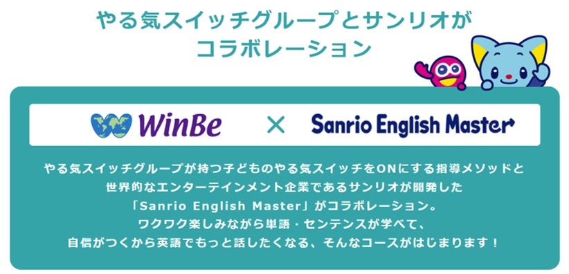 株式会社やる気スイッチグループ(本社:東京都中央区、社長:高橋 直司、以下、やる気スイッチグループ)は、株式会社サンリオ(本社:東京都品川区、社長:辻󠄀 朋邦、以下、サンリオ)とのコラボレーションとして子ども向け英語・英会話スクールWinBe®(ウィンビー)の人気コース『Fun Kids English(ファンキッズイングリッシュ)』をさらにパワーアップしてリニューアルすることを発表しました。