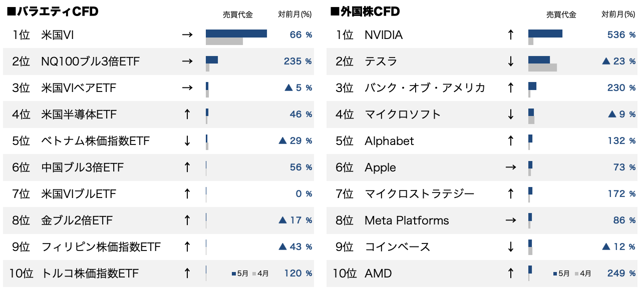 ~総合首位は米国NQ100!バラエティCFDでは米国VI、外国株CFDではNVIDIAが首位に~