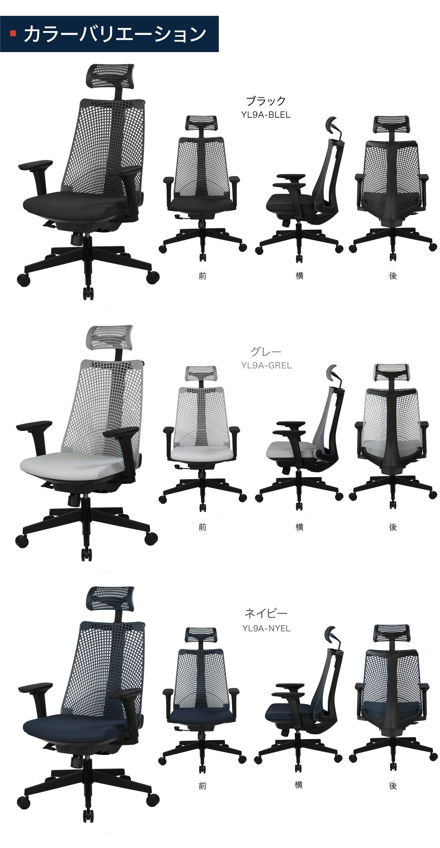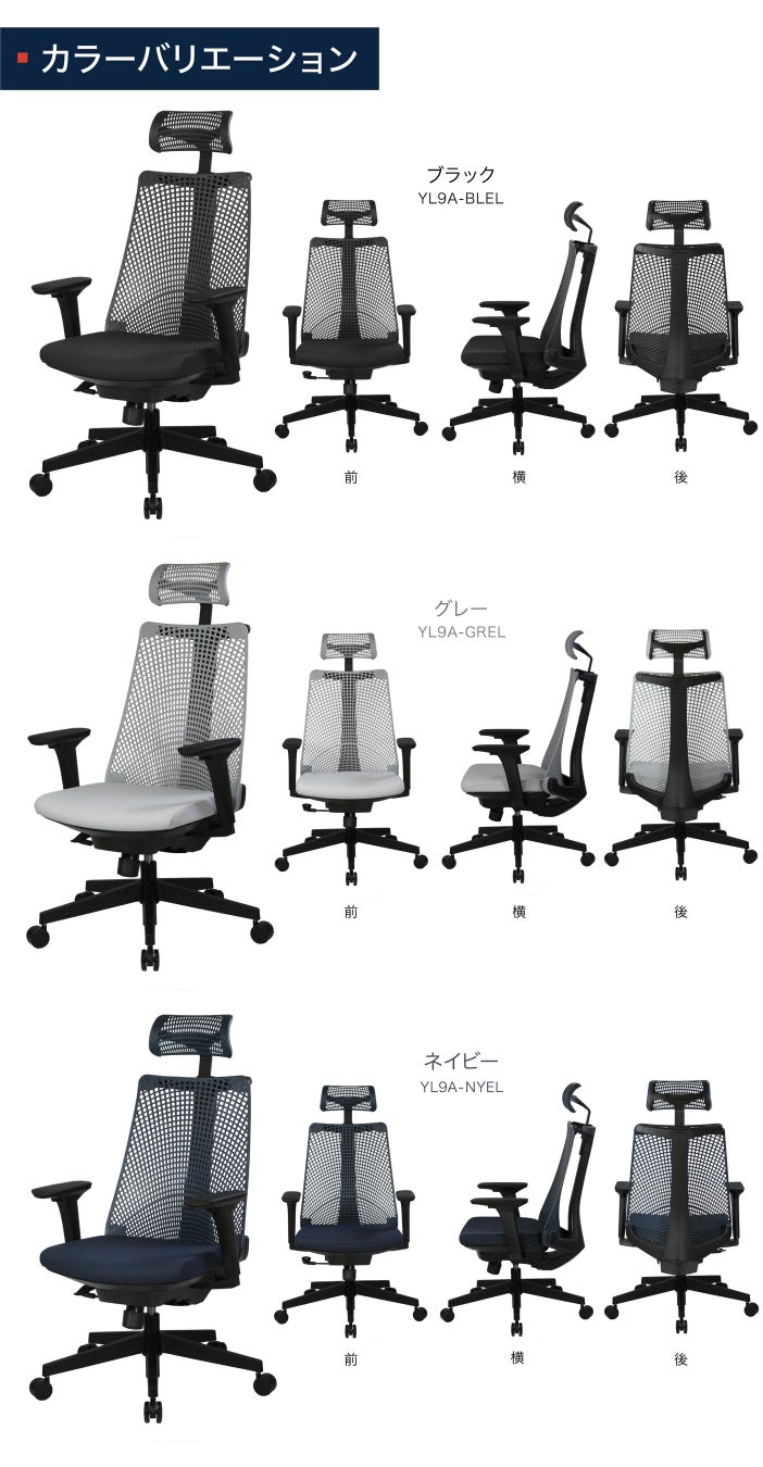 このたび、カジュアルラインの「YL9A」に新たにブラックカラーを追加ラインアップします。洗練された印象を与えるブラックは、在宅ワークチェアの中でも常に高い人気を誇る定番カラーです。