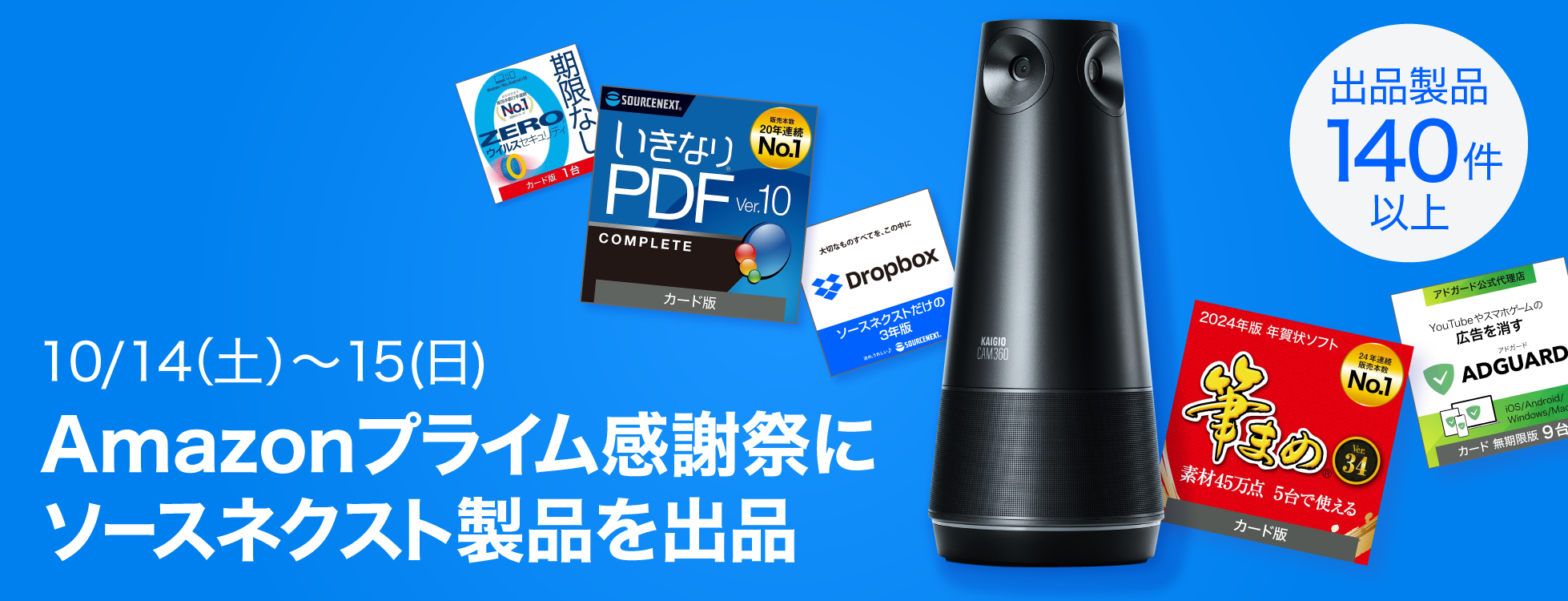 ソースネクスト株式会社(本社:東京都港区、代表取締役社長:小嶋 智彰)は、2023年10月14日(土)0時から15日(日)23時59分まで開催される「Amazonプライム感謝祭」に、弊社の人気製品140製品以上を最大67%割引で提供することをお知らせいたします。