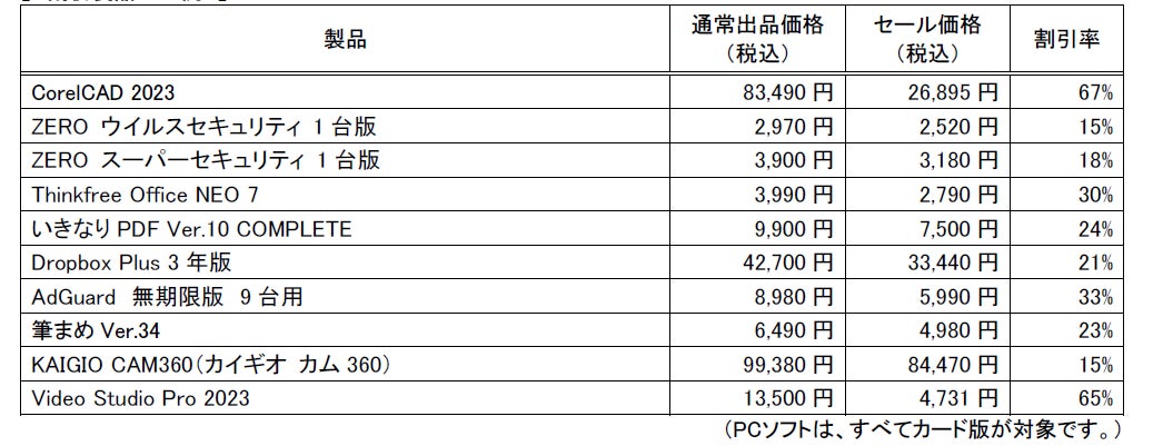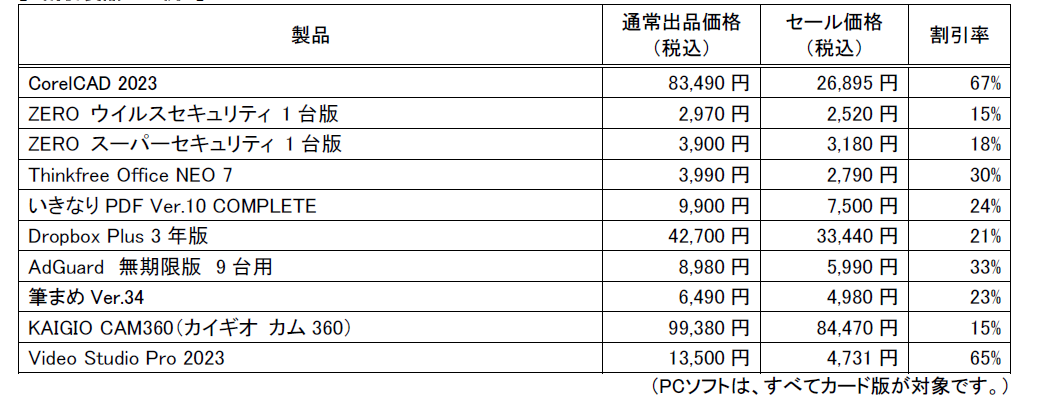 さらに、コーレルのCADソフト「CorelCAD 2023」は最大割引率となる67%引でお届けします。