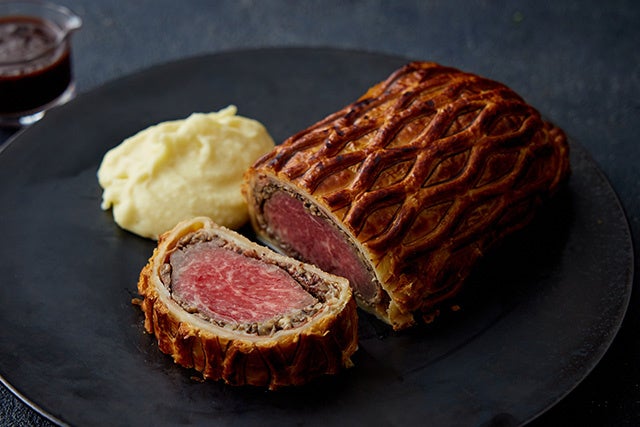 前菜からメインディッシュまで、お酒とともに、レストランのコース料理のようにおたのしみいただけるセットメニューとしてお料理を揃えました。「鹿児島産黒毛和牛のパイ包み焼き 黒トリュフソース」はコース限定のサイズ。 温めてから切り分けてお召しあがりください。