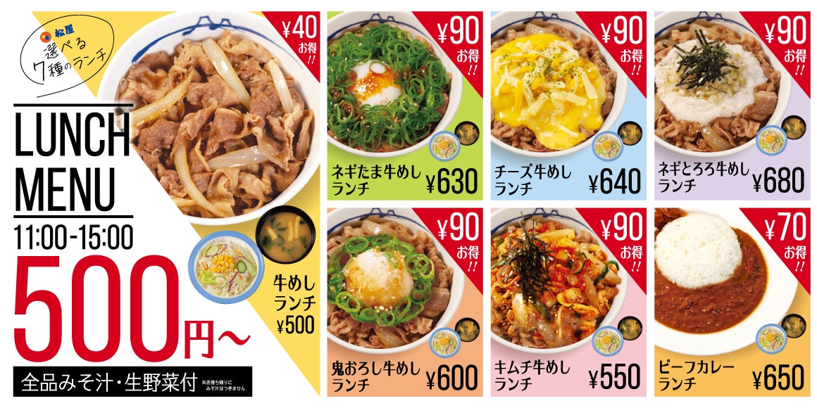 【松屋】新生活応援!松屋のランチタイム1時間延長!新たに3つのランチメニューを追加。計7種の選べるランチに!