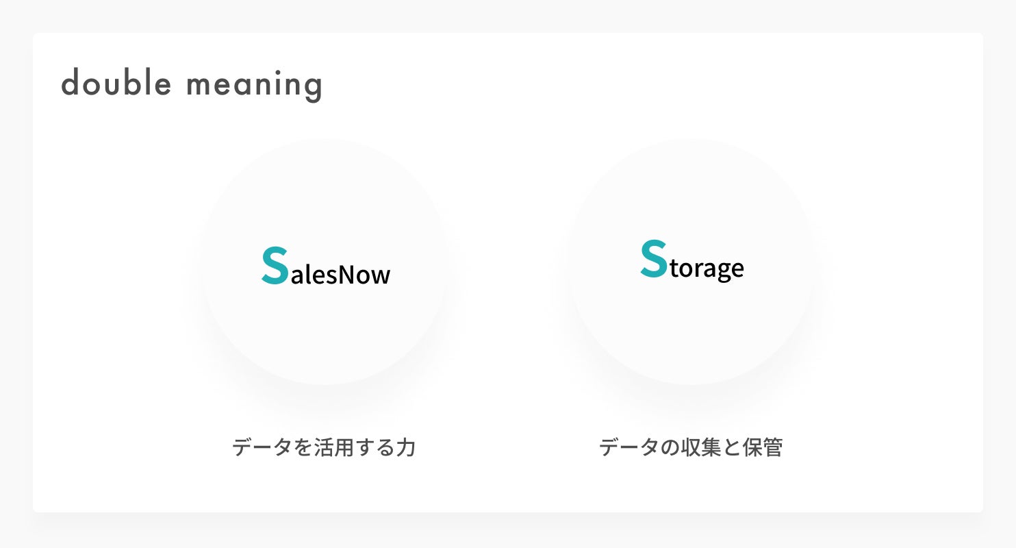 ロゴの「S」には、「SalesNow」の「S」と「Storage」の「S」という二重の意味が込められています。このデザインは、データの収集と保管、そしてそれを活用する力を象徴しています。