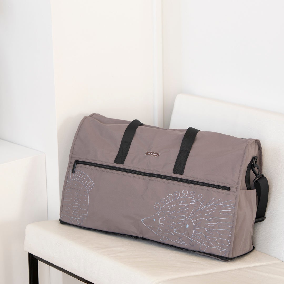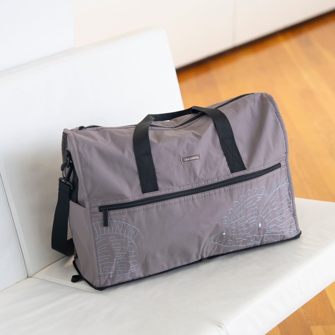 リサ・ラーソンの人気キャラクター「はりねずみ三兄弟」をあしらった、折りたたみ式のボストンバッグです。