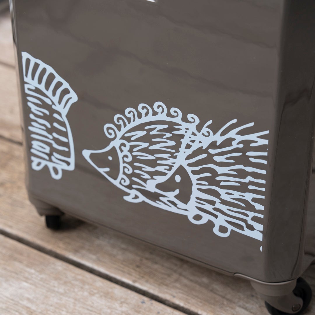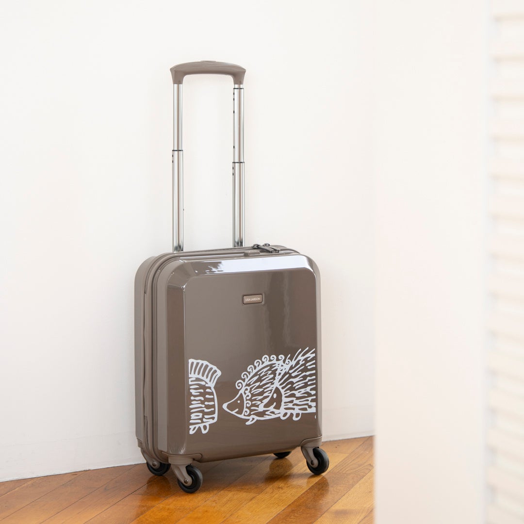 リサ・ラーソンの人気キャラクター「はりねずみ三兄弟」がデザインされたスーツケース。