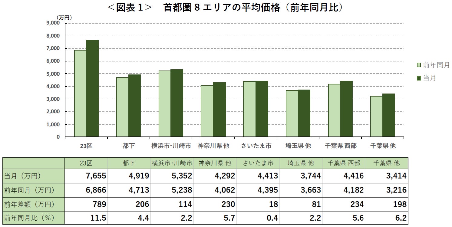 首都圏全体の平均価格は、前月比、前年同月比ともに上昇した。