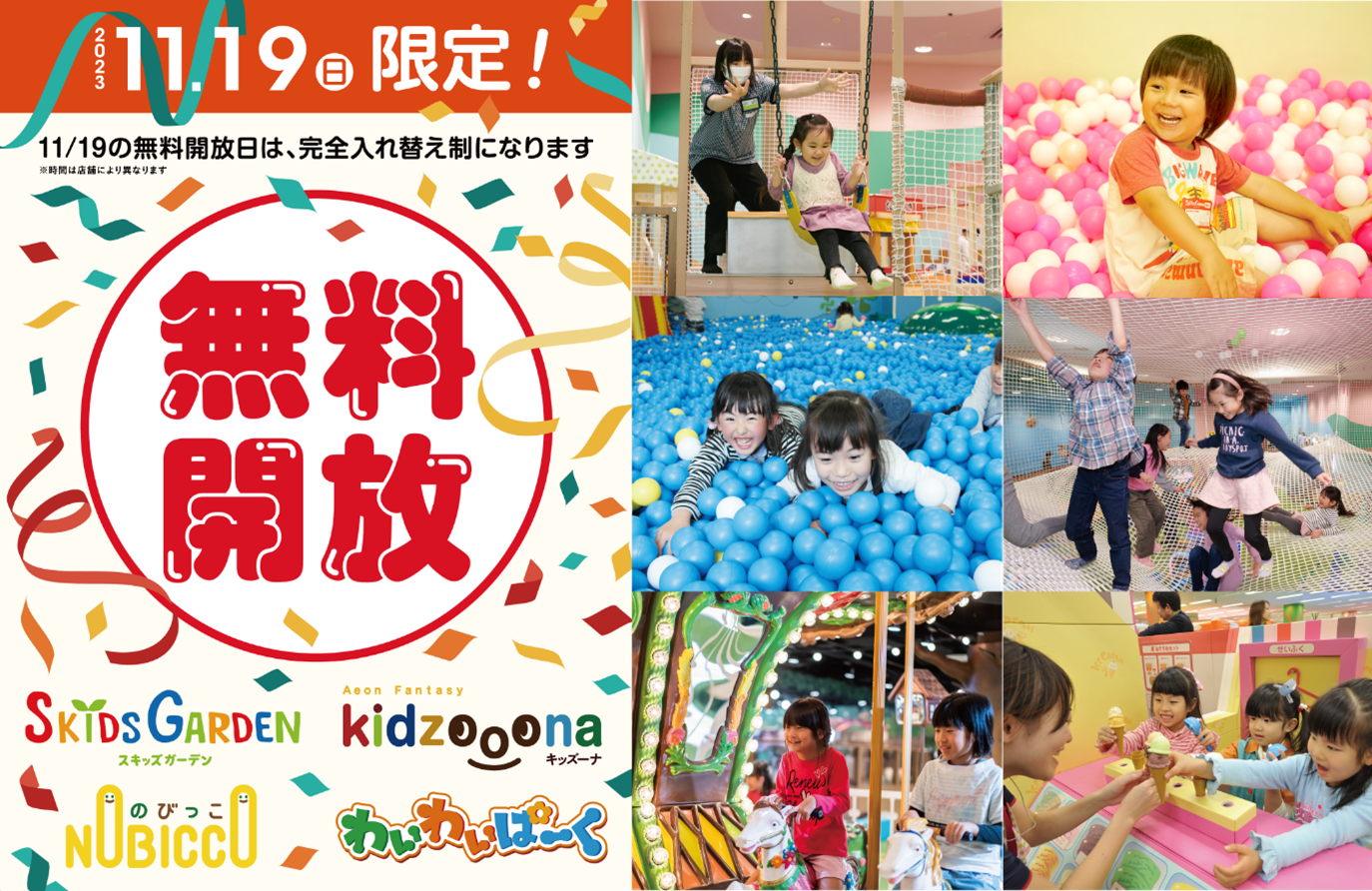※11月19日(日)の全国時間制遊具施設無料開放では、お子さまのみでのご利用はできません。保護者同伴でのご利用に限らせていただきます。