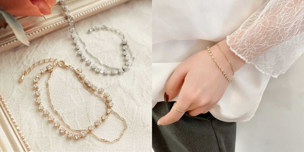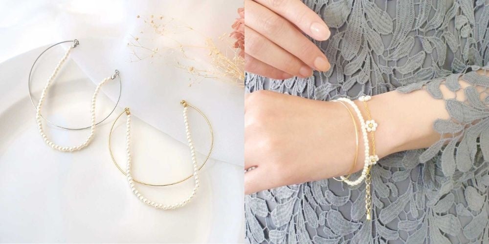 ブレスレットやバングルは顔周りにこないので、さりげなく取り入れることが出来ます。