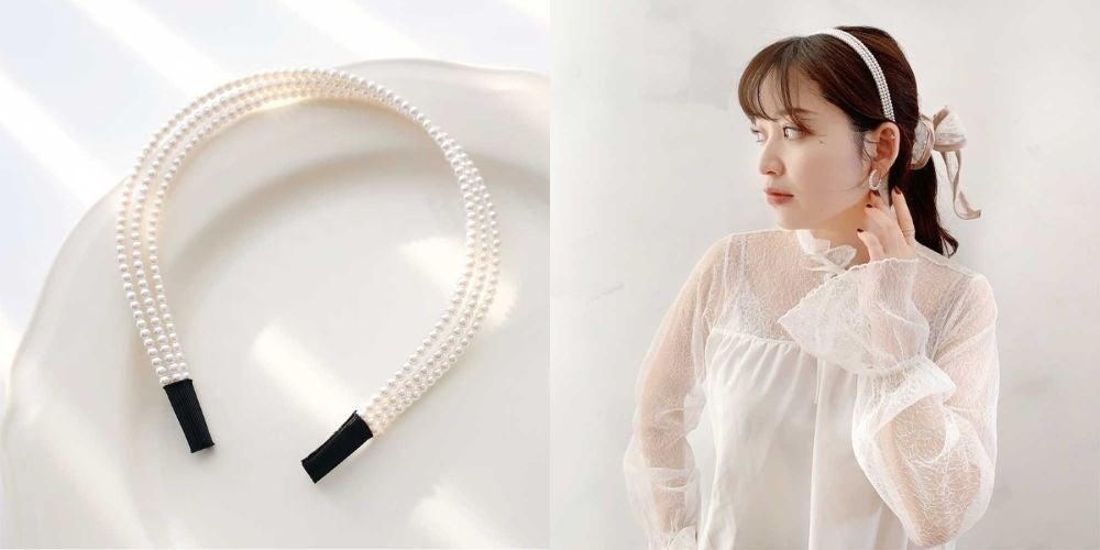 パールが付いていることで一気に女性らしく、華やかな印象に仕上がります。