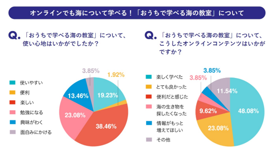 第2回アンケート結果発表となる今回は、コロナ禍で増えた「おうち時間」にまつわる結果をまとめました。特に2021年活用された「おうちで学べる海の教室」について注目して見ていきます。