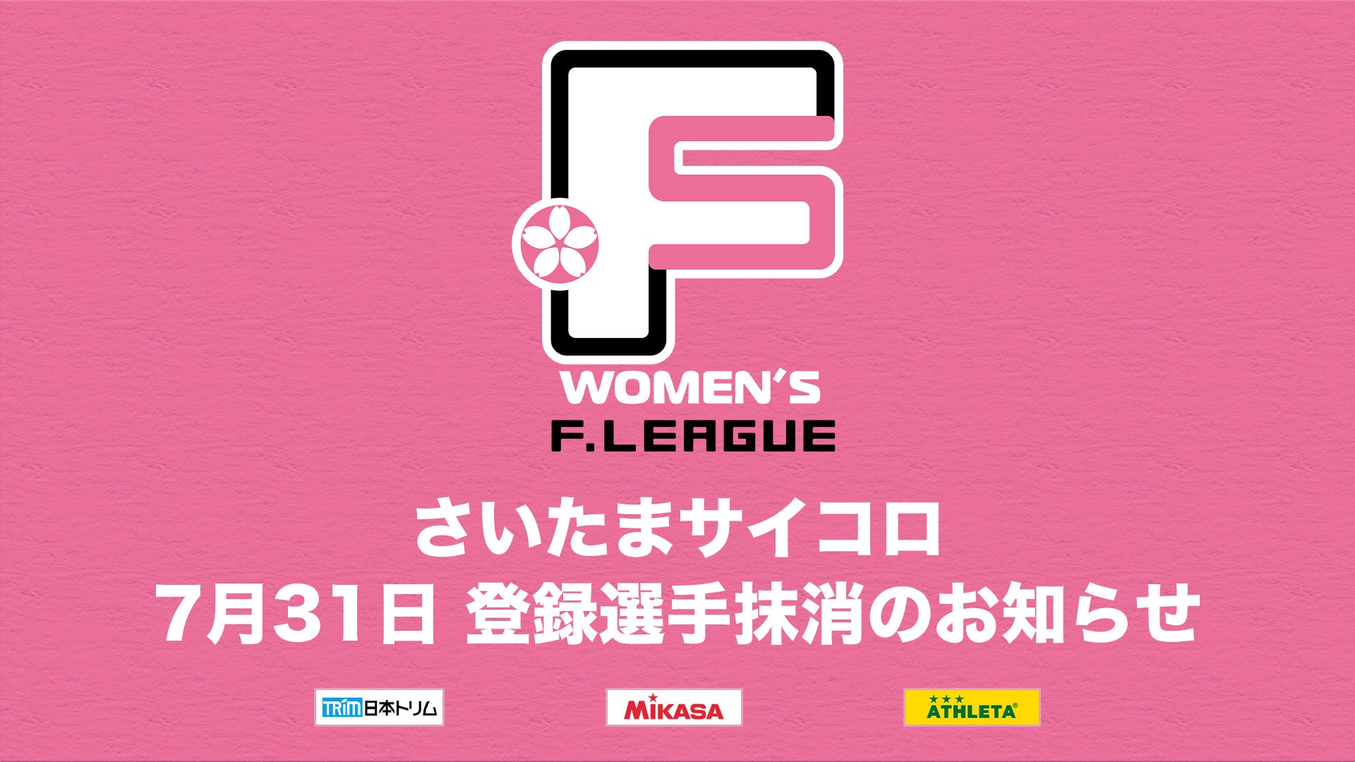 7月31日、女子Fリーグ2024-2025において、さいたまサイコロの登録選手が抹消されましたのでお知らせいたします。