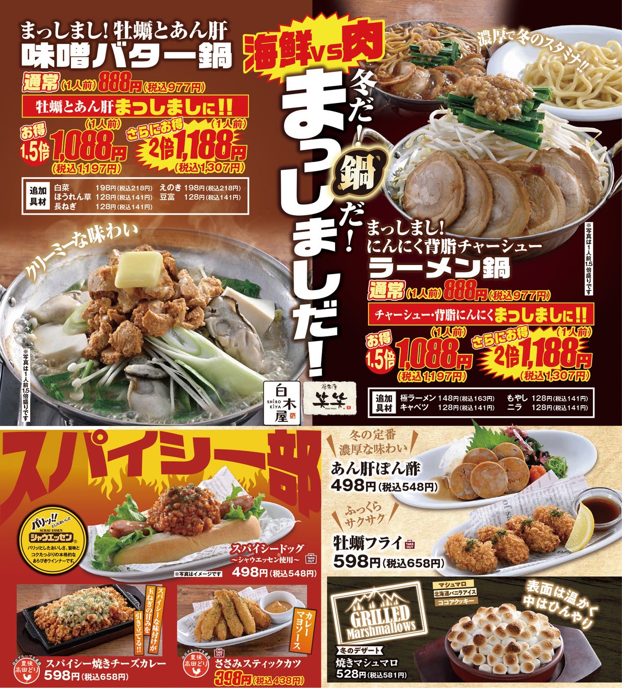 【 海鮮 vs 肉 】冬だ!鍋だ!まっしましだ!寒い冬がやってきた!季節限定メニュー【白木屋・笑笑】