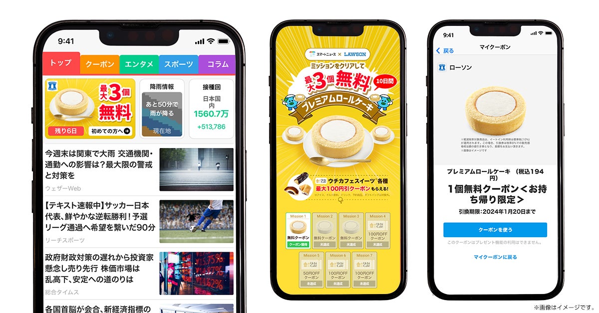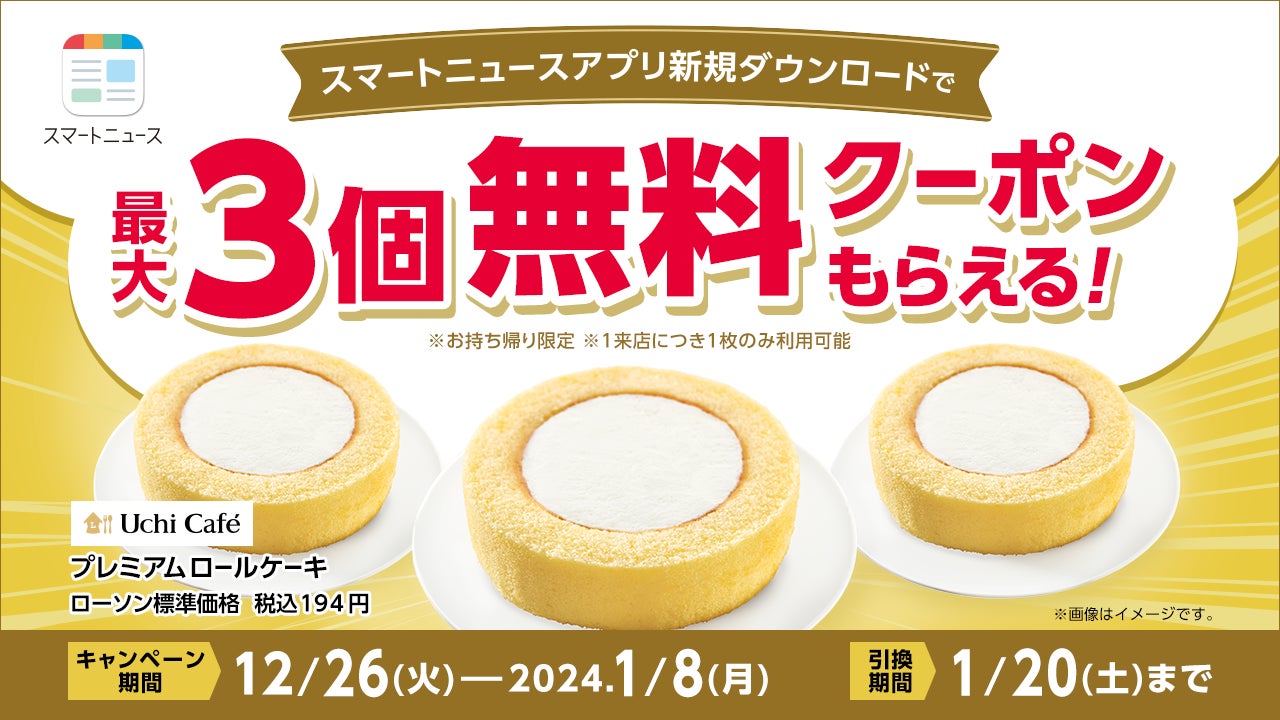 SmartNews、ローソンと共同で期間限定のクーポン特別企画を開始!新規ユーザーの方へ人気商品「プレミアムロールケーキ」が最大3個無料に