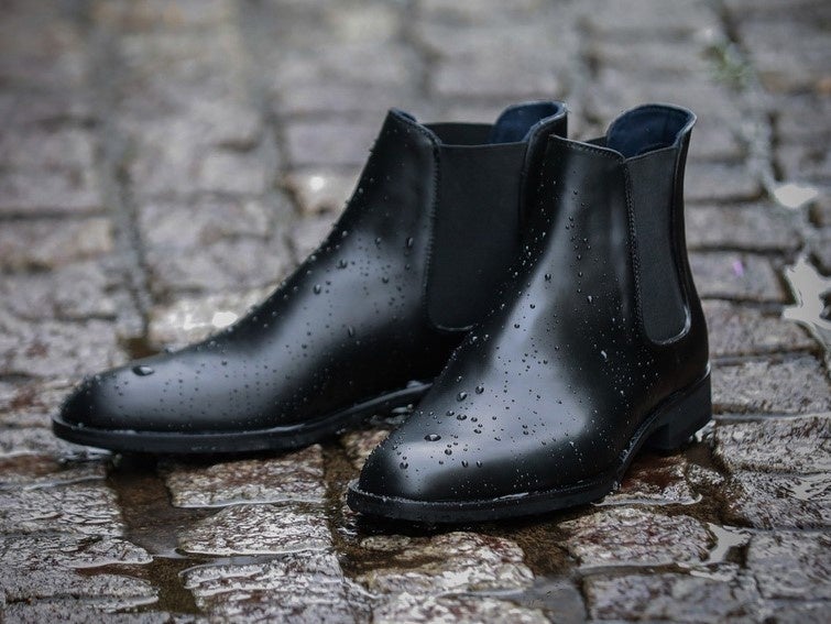 三陽山長のマスターピースモデルであるストレートチップの「友二郎」をベースにしたレインシューズ「防水 友二郎」とサイドゴアブーツタイプのドレスシューズ「誠十郎」をベースにしたレインシューズ「防水 誠十郎」は、発売以来多くのビジネスパーソンに支持されています。シャープでスタイリッシュなフォルムで、スーツスタイルに最適なレインシューズ。雨天時はもちろんのこと、雨がやんでも違和感なく履ける一足です。