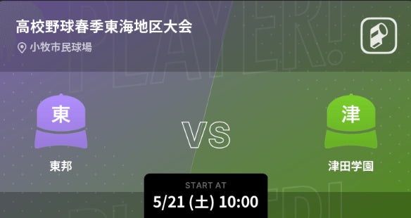 春季東海地区高等学校野球大会がPlayer!でリアルタイム速報!小牧市民球場で5月21日に開幕!!