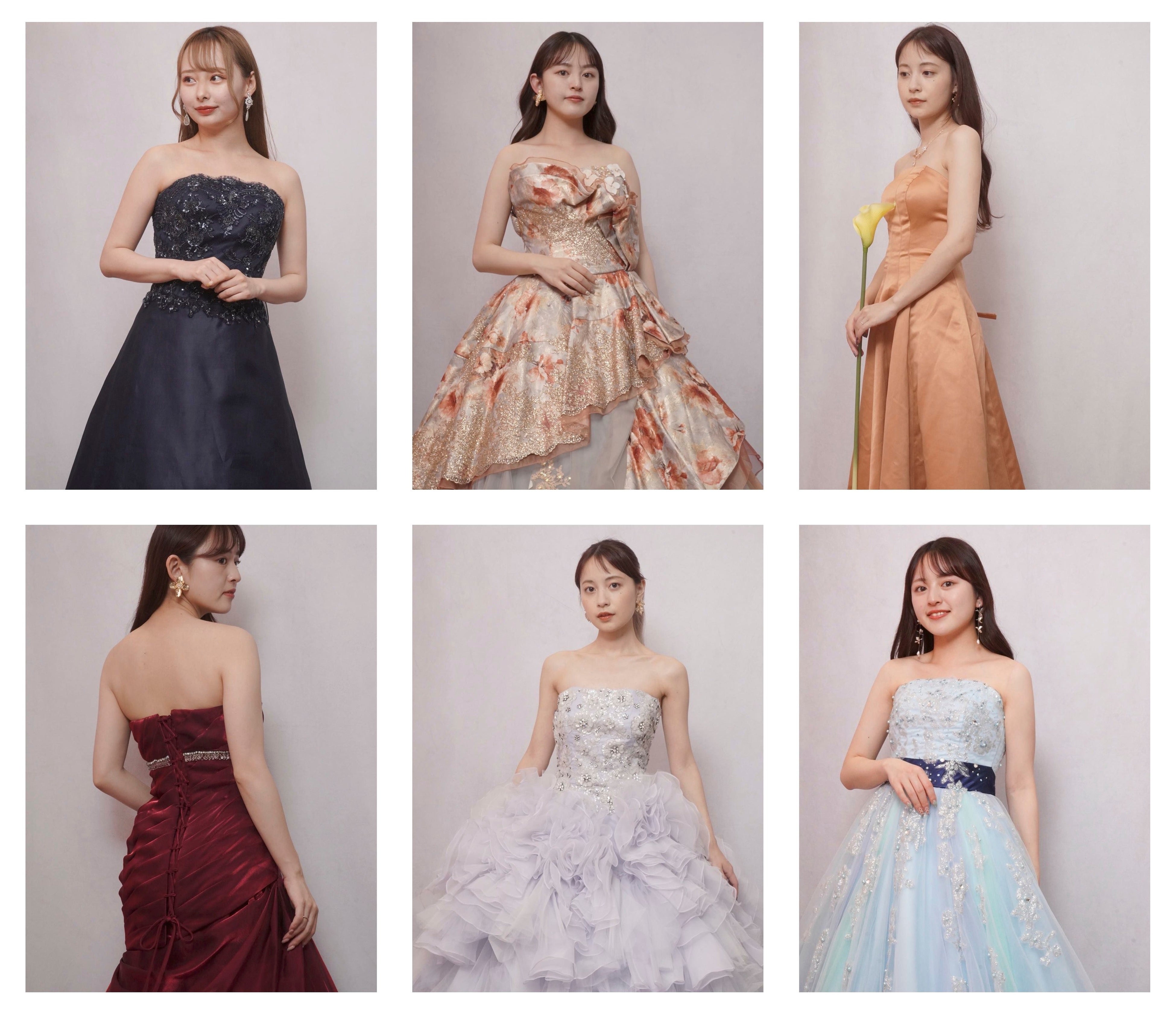 テラコッタ・ブルー・パープルのカラードレスをご用意。パフスリーブやオフショルダーなど最新トレンドデザインのドレスとなっております。ご来店いただいたお客様限定価格にてレンタルのご予約も可能。