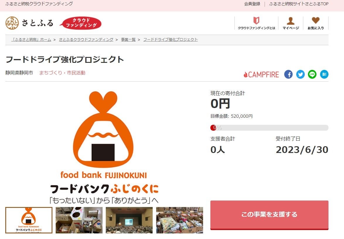 静岡県静岡市とさとふる、フードバンク活動の支援や児童育成に関わる活動支援のため、寄付受け付けを開始