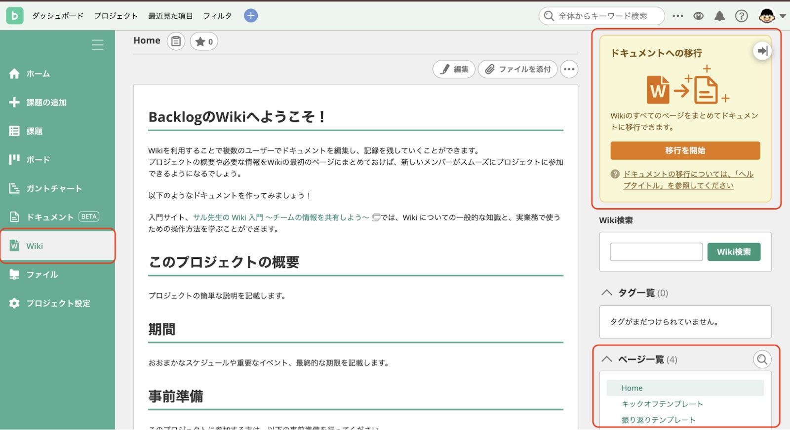 なお、現在のWiki機能については、将来的にドキュメント機能へ統合する計画です。統合時期の詳細については、決定次第あらためてご案内します。
