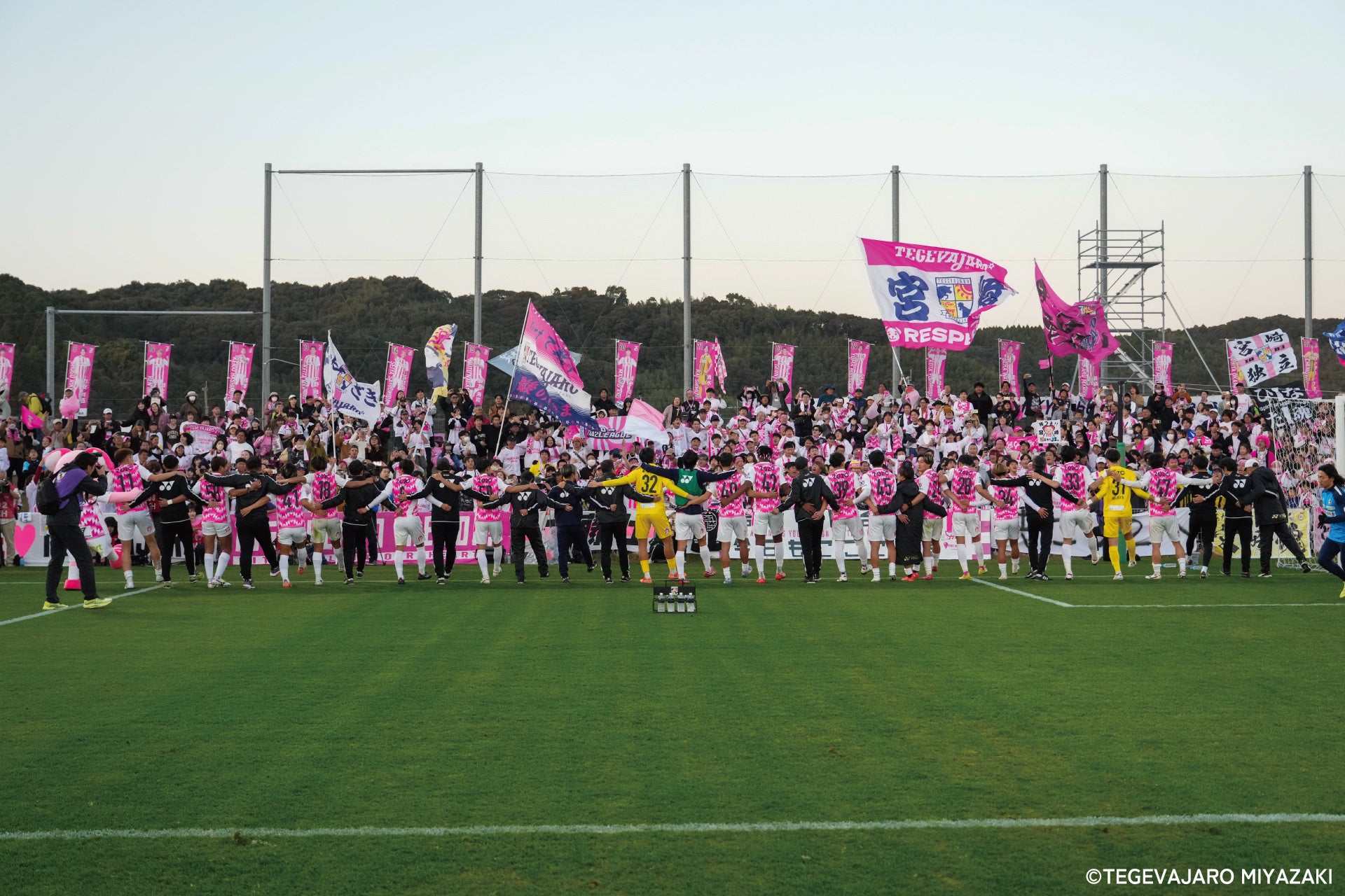 決して平坦な道ではありませんでしたが、そのたびに背中を押してくれたのは、いちご宮崎新富サッカー場に集うファミリーの皆様の声援と、遠く離れた場所からでも寄せられる温かな応援でした。