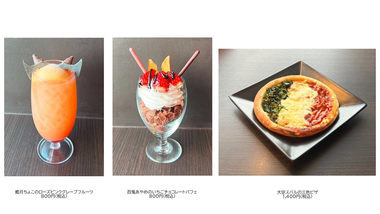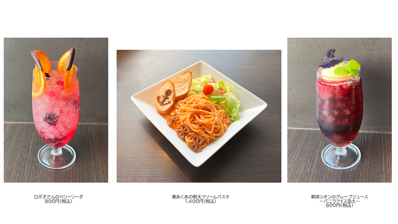 カフェレストラン「フレームカフェ」では、「ロボ子さん」と「ホロライブ2期生」をイメージしたメニューを販売いたします。 メニュー1点ご注文につき、ノベルティのクリアコースターをランダムで1枚プレゼントします。