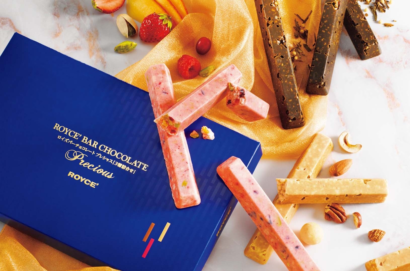 これまで創業記念の年に販売していた特別な味わいのバーチョコレートを、ロイズタウン工場25周年記念のパッケージでご用意しました。ナッツ・フルーツ・ほうじ茶。ブレンドする素材にこだわった、この詰め合わせでしか味わえない3種類のおいしさをお楽しみいただけます。