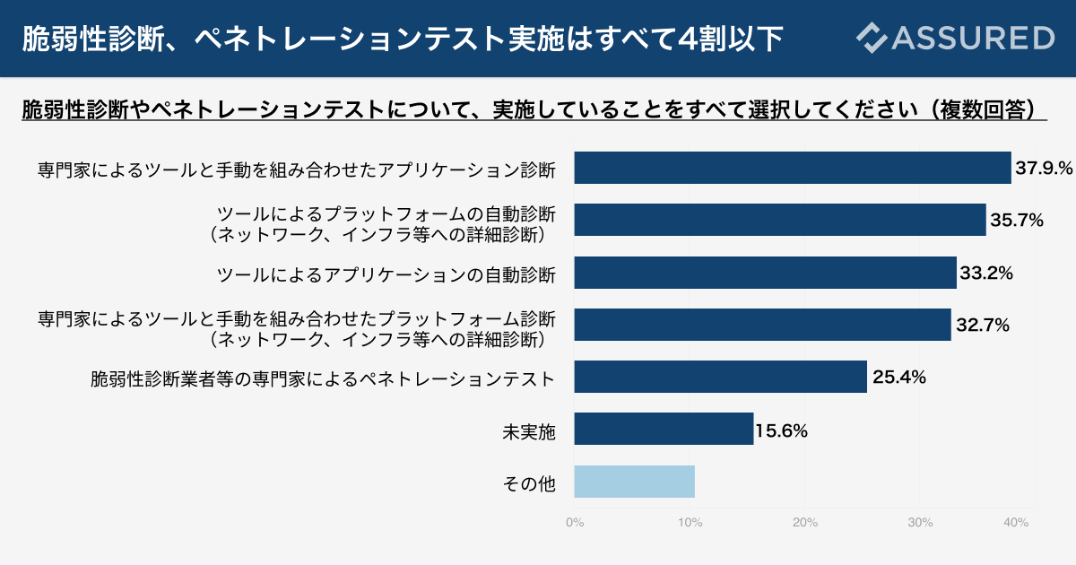 〜脆弱性診断やペネトレーションテストの実施は4割以下。約3分の1が不正アクセス監視未実施(セキュリティ評価プラットフォーム「Assured」調査)〜