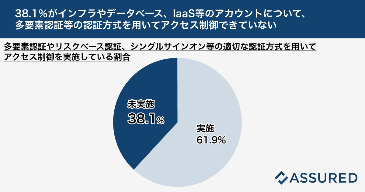 38.1%がインフラやデータベース、IaaS等のアカウントについて、多要素認証等の認証方式を用いてアクセス制御できていない