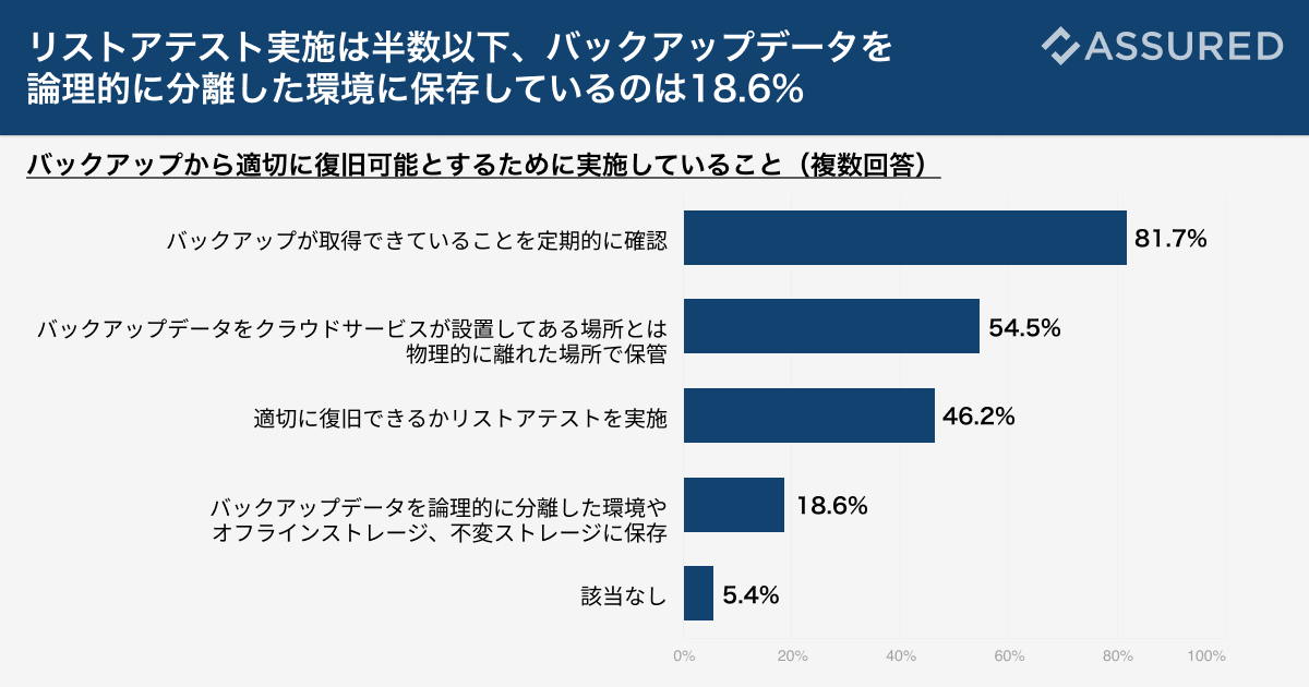 バックアップ対策でリストアテスト実施は半数以下、バックアップデータを論理的に分離した環境に保存しているのは18.6%