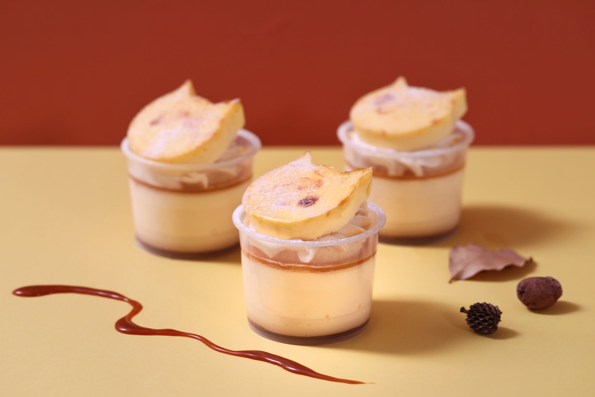 チーズケーキとプリンが一度にお楽しみいただける特別感溢れる当商品。なめらかプリンの上にアプリコットソースとキャラメルクリームで仕上げ、風味にアクセントを加えました。プリンのなめらかさ、チーズの酸味に加えて、キャラメルの甘くコクのある味わいを一緒にお楽しみください。