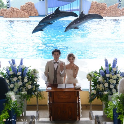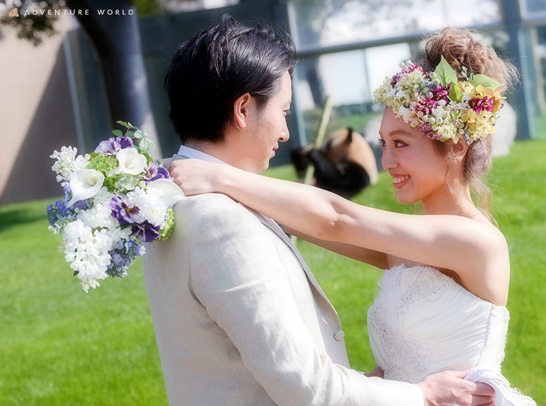 アドベンチャーワールドでは2017年6月より、パークを舞台とした結婚式、ウェディングパーティー、そしてフォトウェディングの受入をスタートしました。ジャイアントパンダや、イルカに見守られながら永遠の愛を誓う、かけがえのない“とき”を、新郎新婦一組一組のご要望に応じプランニングしております。