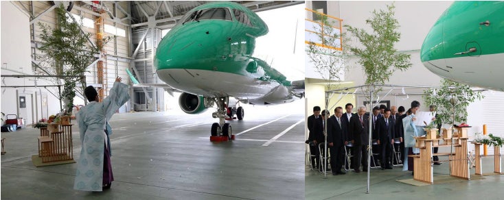 FDAと久能山東照宮のご縁は、2009年に初号機を導入した際に、久能山東照宮の神職を招いて安全祈願祭を実施したことに始まります。以来、新機材導入時には欠かさず久能山東照宮の神職による安全祈願のお祓いを受けています。このようなご縁とFDA社員の発案により、今回のコラボレーションが実現しました。